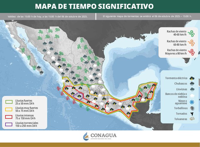 Finalmente, un canal de baja presión en el interior de la República Mexicana en combinación con la entrada de humedad del océano Pacífico y golfo de México, propiciaran chubascos y lluvias fuertes en el norte, noreste y centro de México.