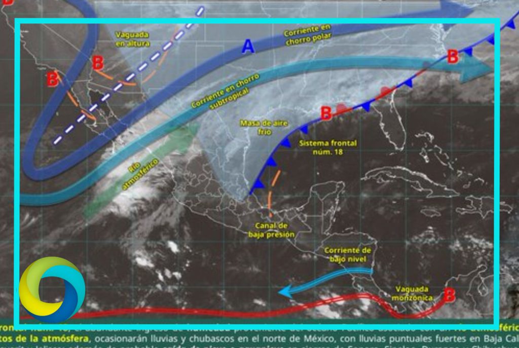 Finalmente, un canal de baja presión en el sureste mexicano y la península de Yucatán, y el ingreso de humedad procedente del océano Pacífico, golfo de México y mar Caribe, ocasionarán lluvias y chubascos en las regiones mencionadas, incluyendo el centro y sur del país, además del valle de México.