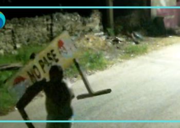 Captan cámaras a ladrón de letrero de tránsito en zona maya