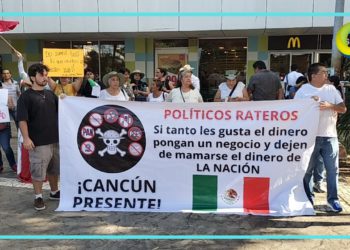 Leer másEl grupo inició su marcha a lo largo de la avenida Tulum, muchos portando antorchas, además ...