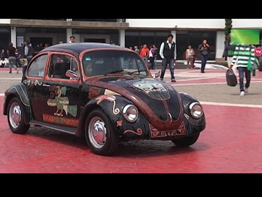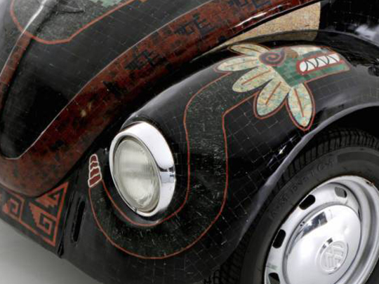 BERLIN, ALEMANIA.- Un “vocho” decorado por artesanos mexicanos con 19 mil 800 piedras semipreciosas que representan símbolos de la civilización prehispánica puede verse desde hoy y por primera vez en Alemania en la Autostadt, el parque temático del consorcio alemán Volkswagen en la ciudad de Wolfsburgo (norte). El “Vocho Teotihuacano” fue decorado en el municipio de San Martín de las Pirámides, donde un equipo de cinco artesanos y el director artístico de la obra, Héctor Garnelo Navarro, invirtieron dos años y nueve meses en acabar el proyecto.