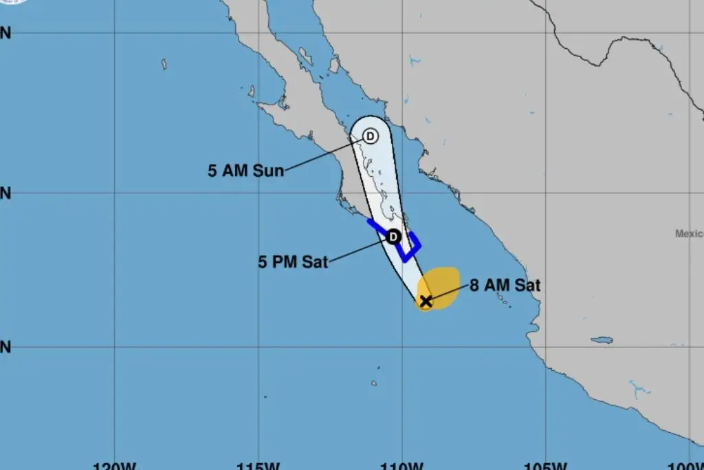 Según el Servicio Meteorológico Nacional (SMN), este sábado 11 de octubre el sistema se localiza a 175 km al sur-sureste de Cabo San Lucas, moviéndose hacia el noroeste a 26 km/h.