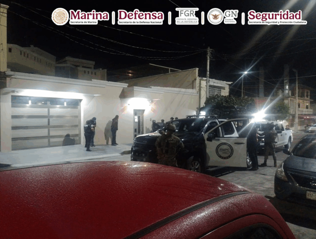 Como parte de los resultados de los operativos para combatir a los generadores de violencia en el estado de Veracruz, en una acción encabezada por elementos de la Secretaría de Marina (Semar), en coordinación con la Fiscalía General de la República (FGR), Secretaría de Seguridad y Protección Ciudadana (SSPC), Secretaría de la Defensa Nacional (Defensa), Guardia Nacional (GN) y Secretaría de Seguridad Pública (SSP) del Estado, se ejecutaron tres órdenes de cateo en inmuebles vinculados a una célula delictiva dedicada a extorsión, privación ilegal de la libertad y robos con violencia.