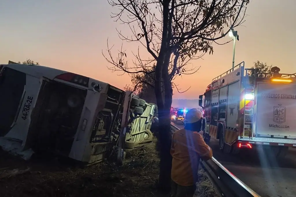 Este sábado, se suscitó una volcadura de un autobús de pasajeros en el municipio de Morelia, Michoacán, que dejó siete muertos y 20 heridos.
