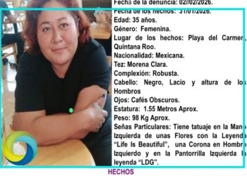 Saraí López Nava, mujer de 35 años de edad, fue reportada como desaparecida por una hija y una hermana, pese a que su madre se encuentra bien y está localizable actualmente en una clínica de Cancún. El esposo y la madre de esta mujer dijeron haberse...